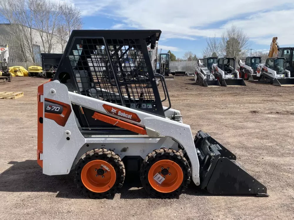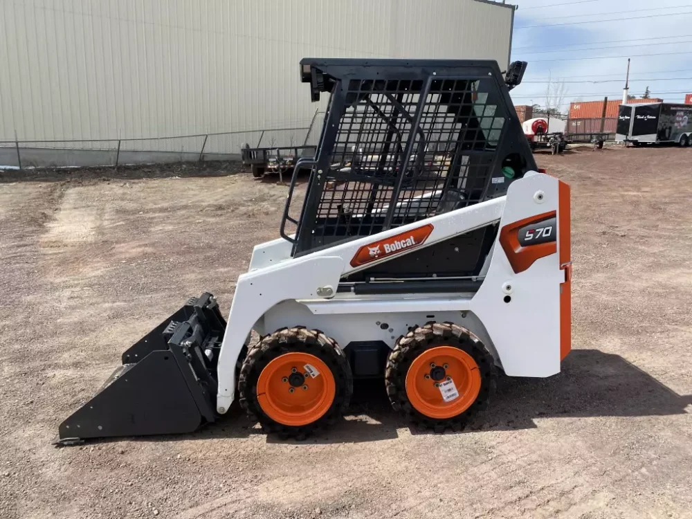 2023 Bobcat, S70 Loaders, The Bobcat S70 is a compact yet powerful skid-steer loader designed to tackle a variety of tasks in tight spaces. With its small footprint and maneuverability, it’s ideal for construction, landscaping, agriculture, and other industries where space is limited. Despite its compact size, the S70 boasts impressive performance, capable of handling heavy loads and tough terrain with ease.Specifications:Engine Power: 23.5hp DieselOperating Weight: 2892lbRated Operating Capacity: 760lbMaximum Speed: 6.3mphFuel Capacity: 6.5galDimensions (L x W x H): 75.6″ x 40″ x 71.4″Height to Bucket Hinge Pin: 94.5″